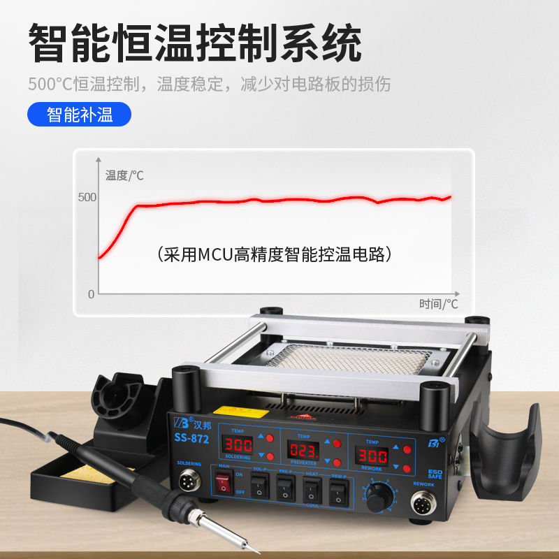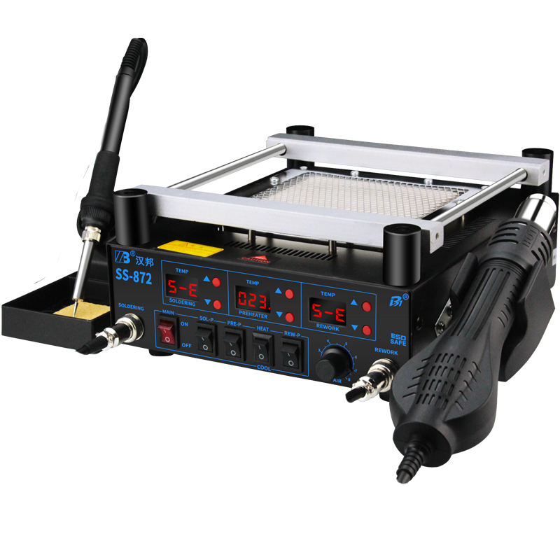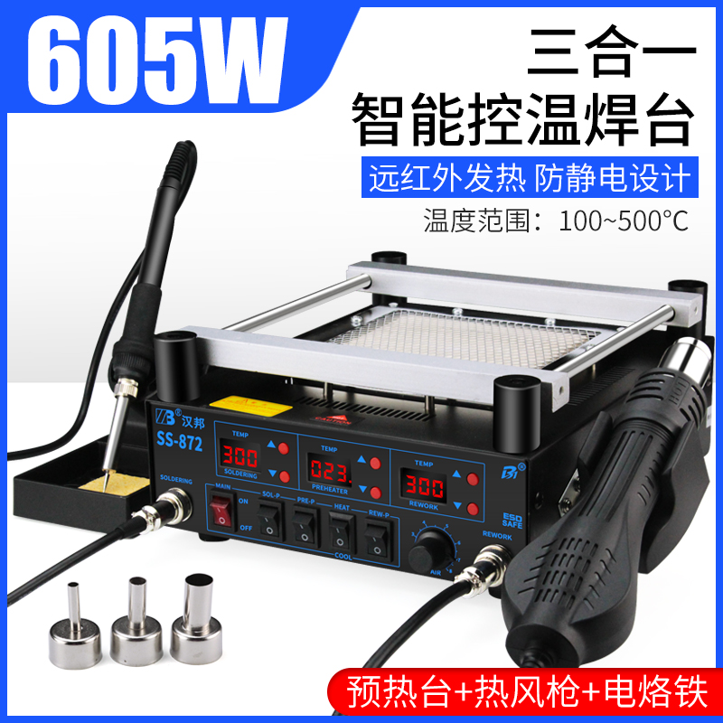 Hanbang SS872 hot air gun desoldering table three-in-one intelligent thermostatic electric soldering iron bga preheating table heating rework station