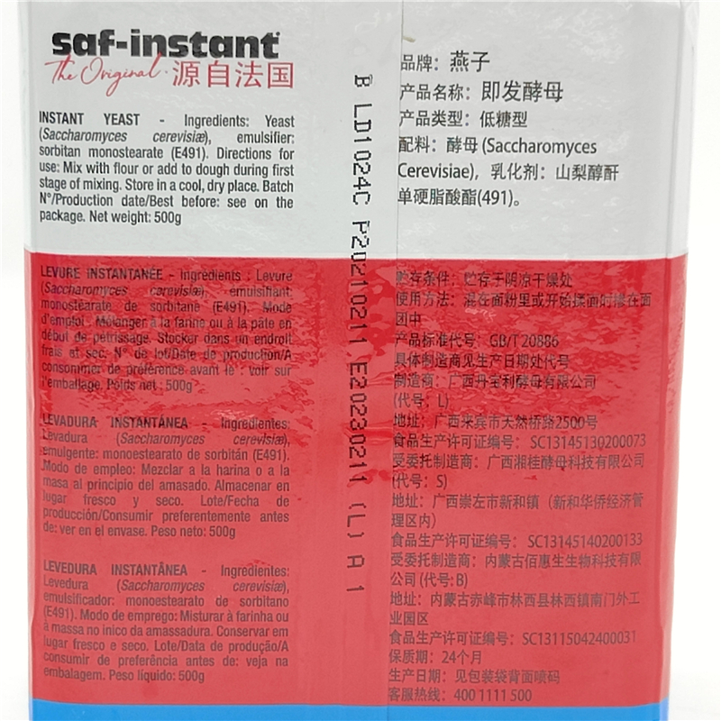 Yanzi simmering dry yeast 500g originated from French Lesfo-resistant low sugar type bread baking high activity fermentation powder