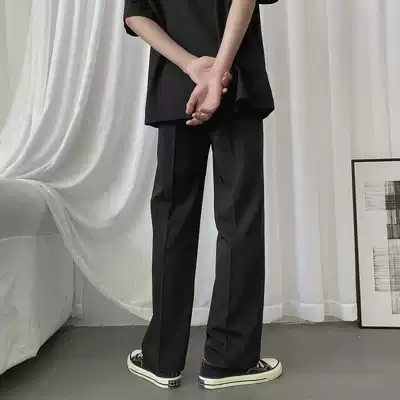 Spring and autumn black plaid loose mop yuppie trousers trend handsome old men's and women's straight casual pants