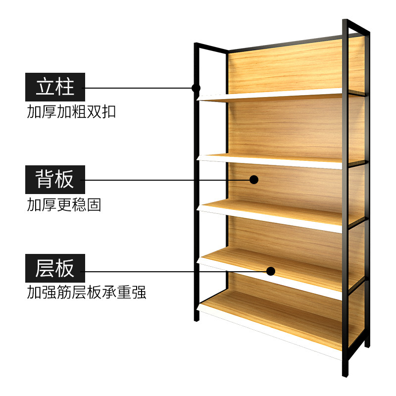 Widening of four columns wood grain supermarket storage removable convenience store imitation wood metal shelves single-sided double-sided end-end hooks