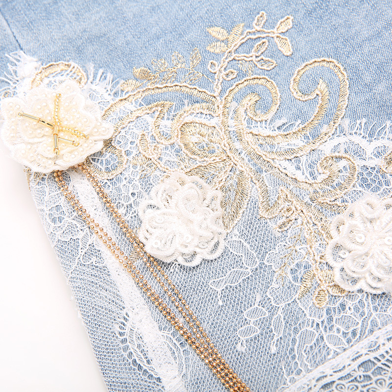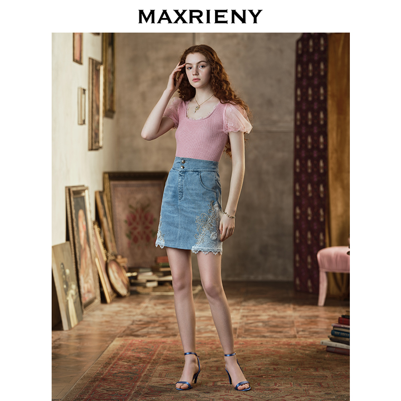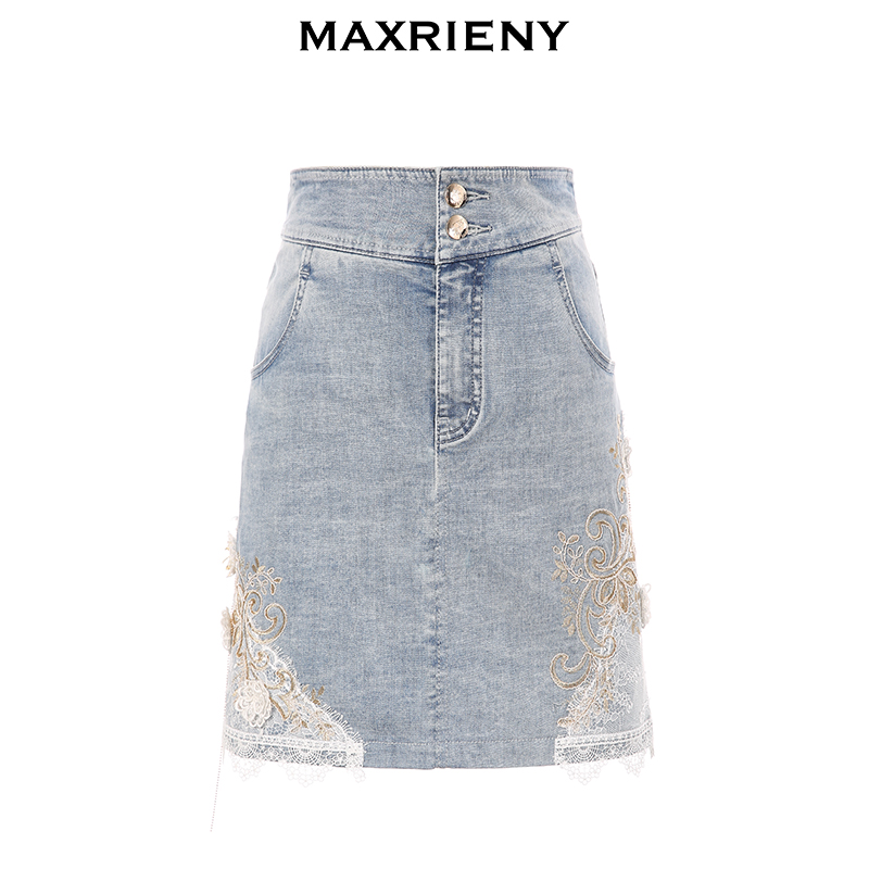 MAXRIENY summer new casual denim half body dress female lace lace short dress playful and reduced age denim dress