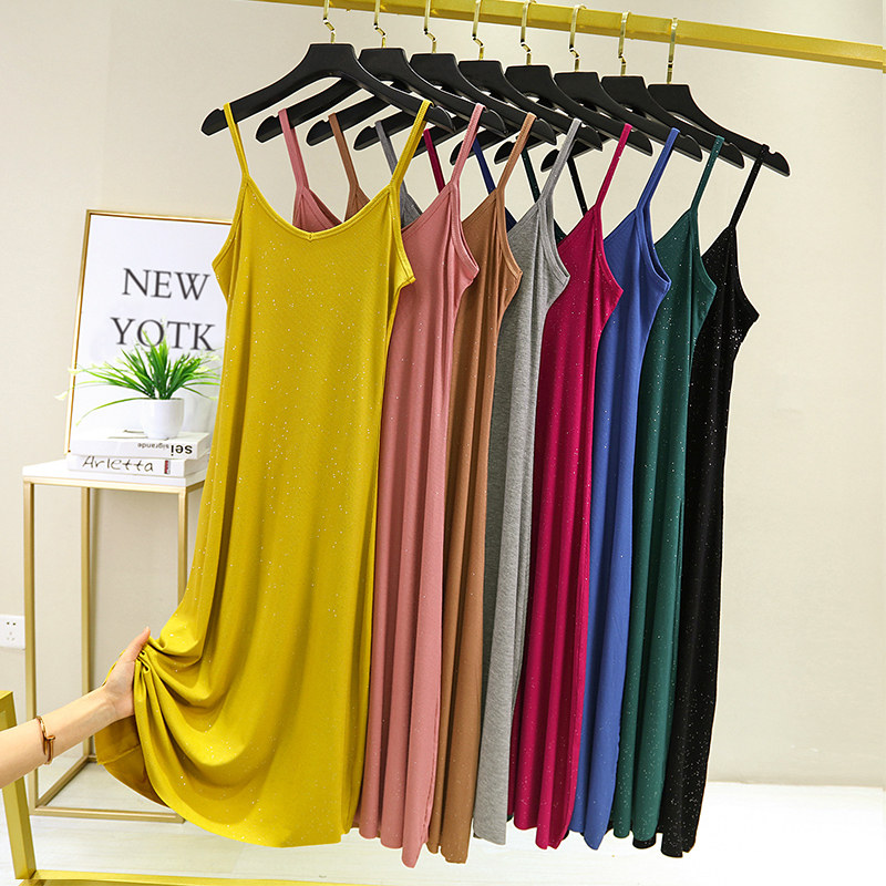 Modale Pendant With Skirt Woman Summer 2022 New Inner Hitch Bottom Inner Lining Dress Long Version Big Size V Collar Ocean Dress Tide