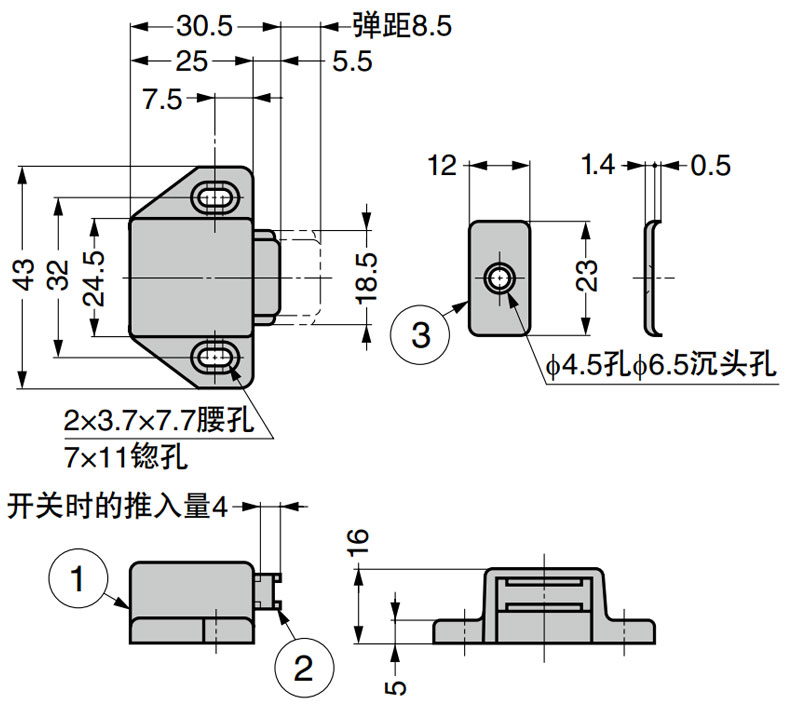 Japan imported LAMP LAMP furniture cabinet door magnetic suction one press to open bounce door touch free handle ML-30SW