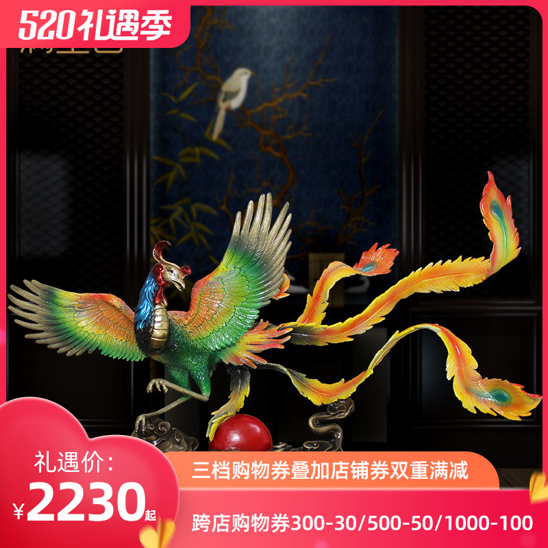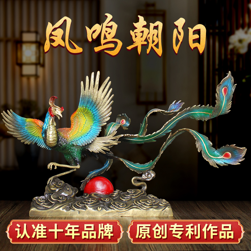 "Feng Ming Chaoyang" fire phoenix ornament pure copper birds dynasty Phoenix living room light luxury entrance housewarming decoration crafts