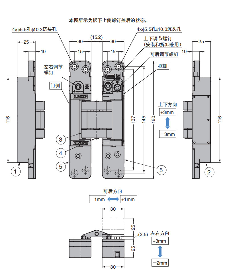 Japan imported LAMP Blue Pu three-dimensional adjustable hidden invisible folding hinge cross hidden hinge HES3D-E160