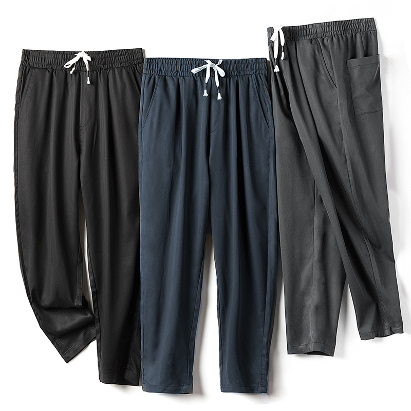 Tencel men's summer hanging pants Wei pants Air conditioning cool pants Loose thin ice copper ammonia silk nine-point casual pants men