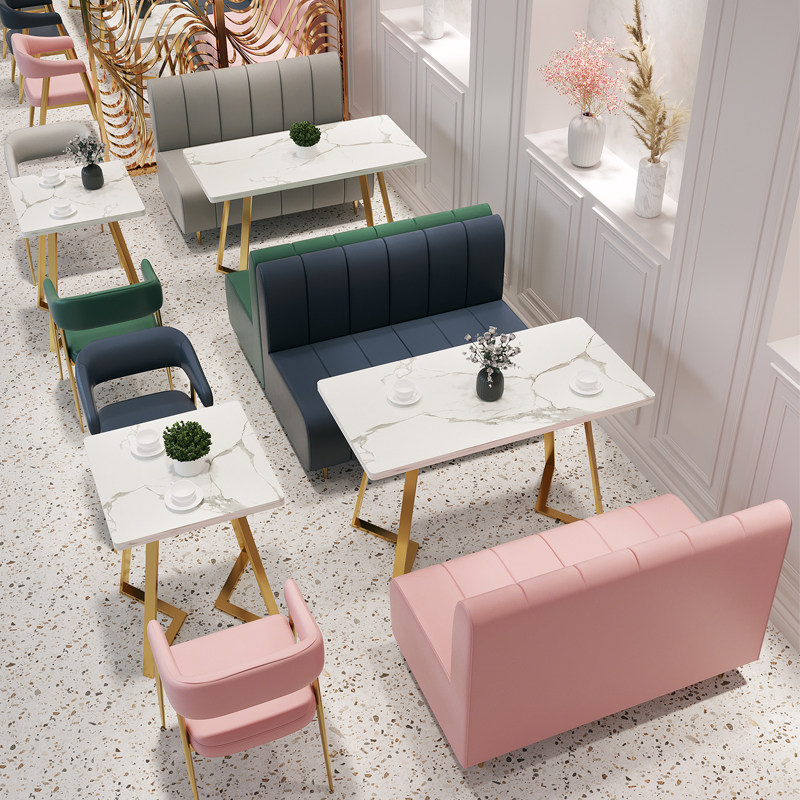 Pink chair green chair blue chair green chair green card seat sofa green card seat sofa gray card seat sofa rectangular tea table (marble splint v gold feet)square tea table