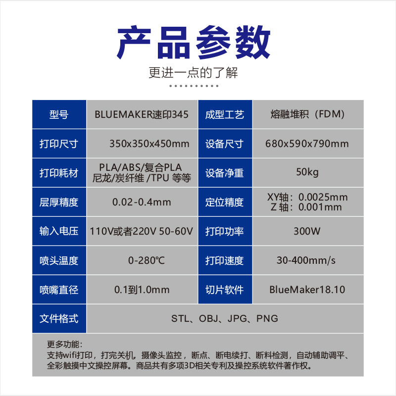 BlueMaker Blue model 3D printer Industrial grade large size enterprise commercial large closed constant temperature dual nozzle High precision 3D printer stereo desktop diy kit ABS