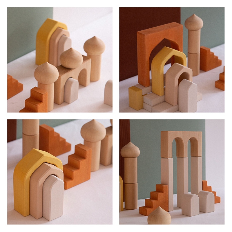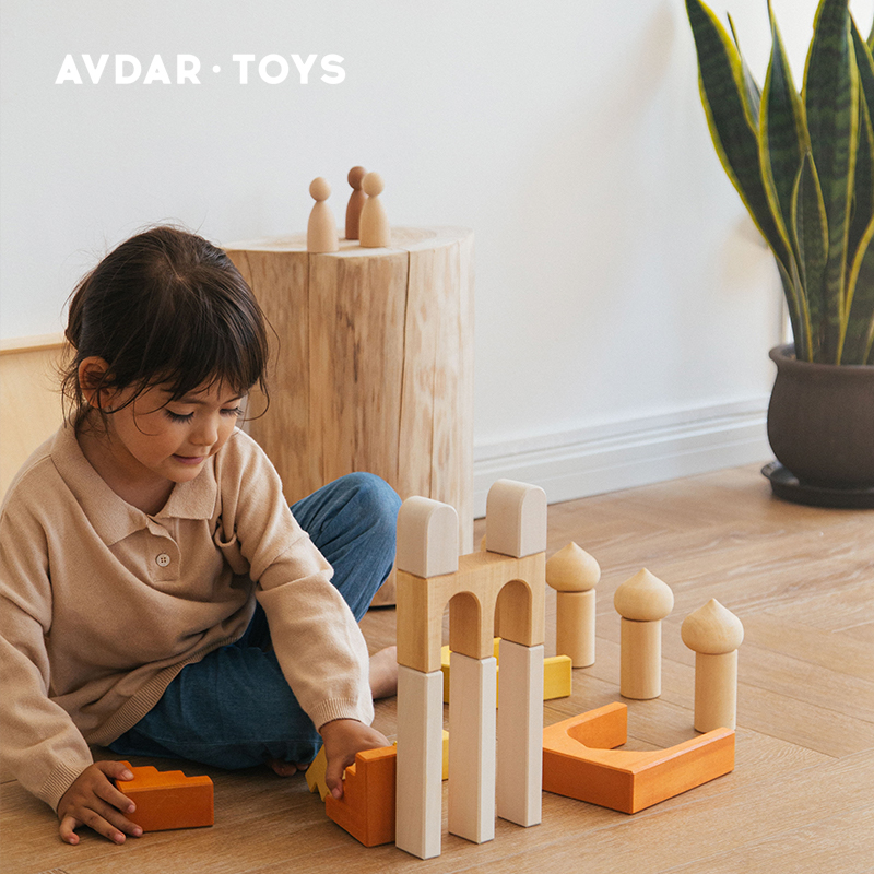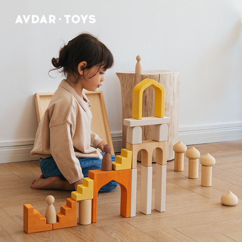 AVDAR imported linden wood toys assembled educational children's educational building blocks large particles solid wood castle building blocks