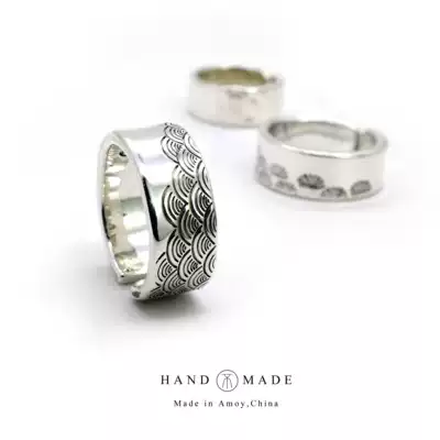 UNEND brand silversmith Ahao new hand-forged silver ring Chinese traditional wave pattern ring Ukiyo-E