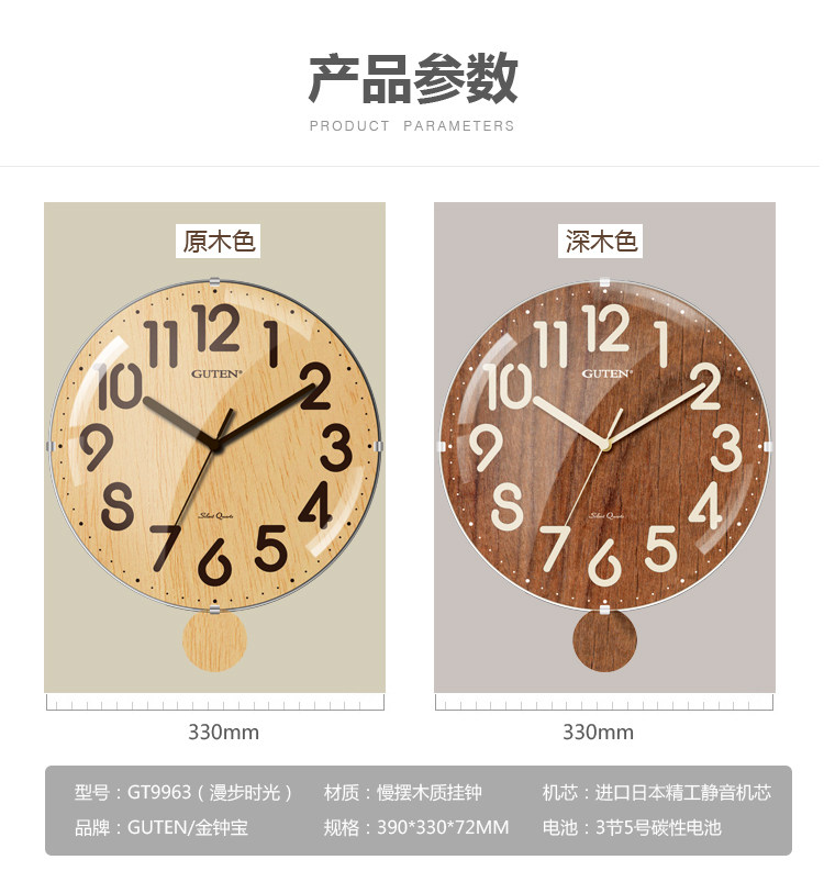 Jinzhongbao modern minimalist wall clock solid wood personality living room mute clock Nordic fashion atmosphere home wall clock