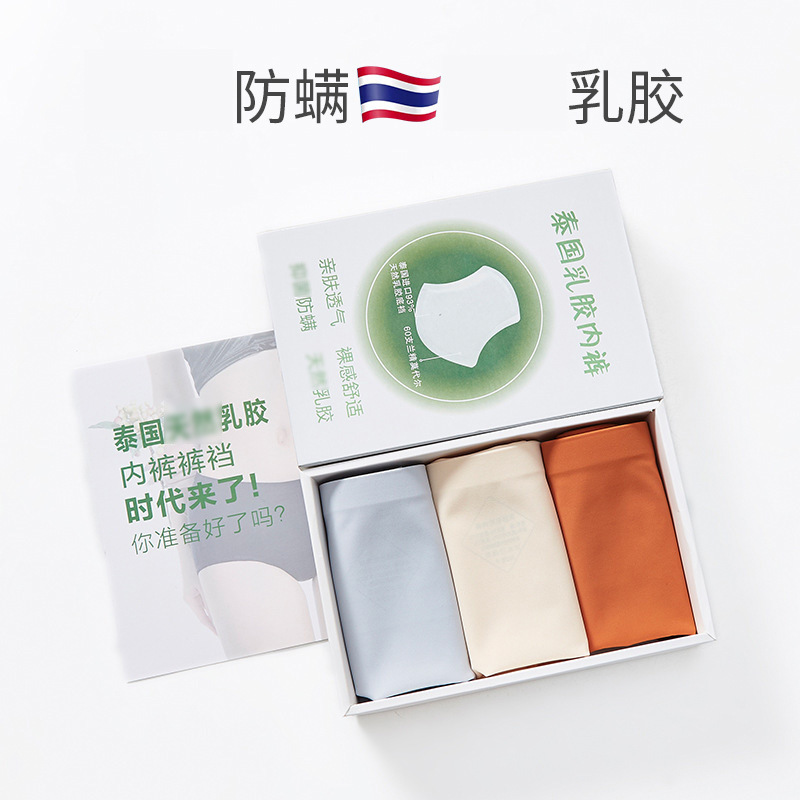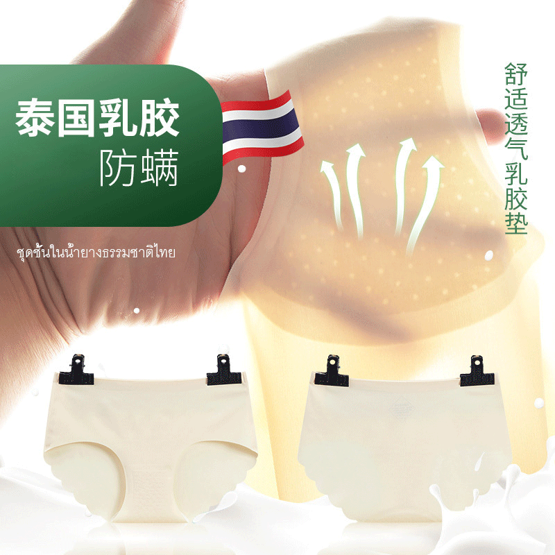 Natural latex panties women's Thai ice silk mid-waist triangle pants incognito safety pants breathable pants briefs 3 pieces