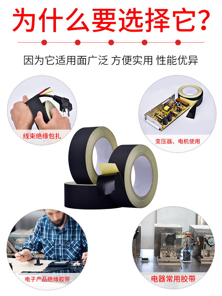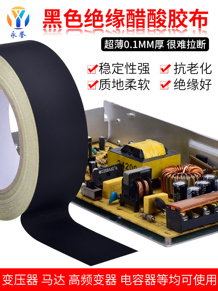 Acetate tape repair hand earphone LCD screen cable fixed motor motor coil outer edge wrapping car wiring harness bundling insulation can not be torn by hand 0 1mm thick high temperature resistant black tape