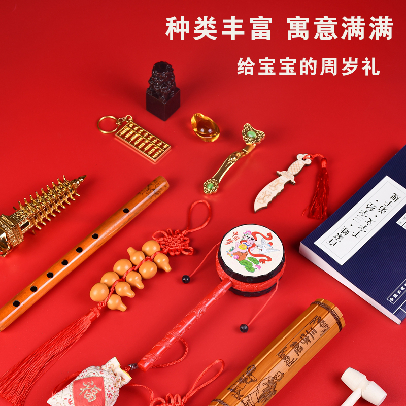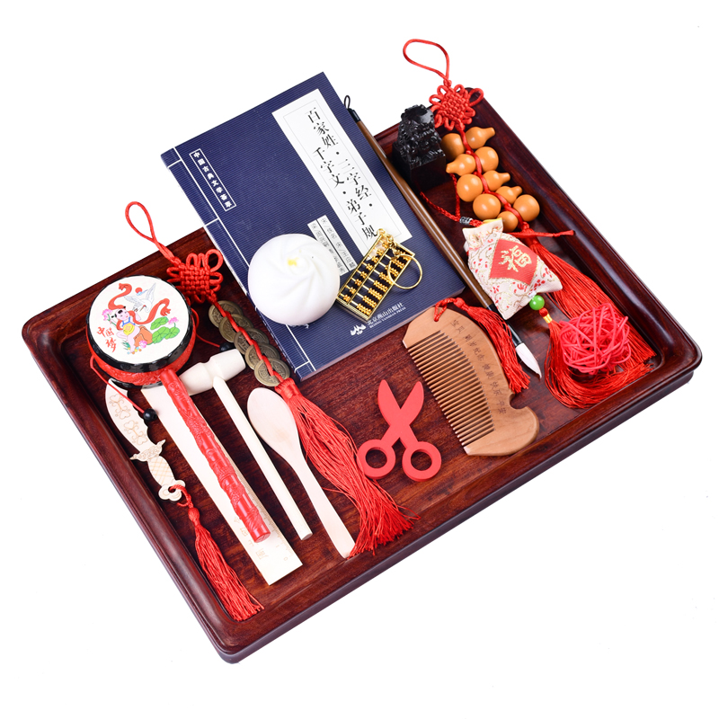 Scratch weekly supplies one year set Chinese style little boy girl gift box props baby first birthday ceremony Chinese birthday casting lots