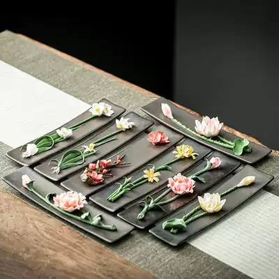Creative ceramic floral stove line incense insert Household handmade personalized sandalwood agarwood tray Zen tea ceremony incense ornaments