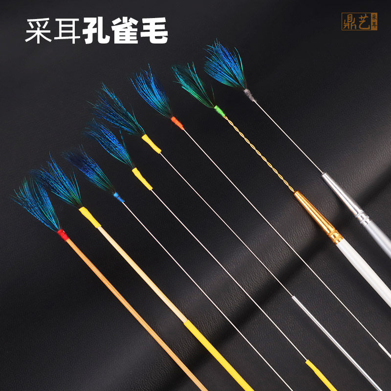 Professional Mining Ear Peacock Wool Bamboo Handle Silver Needle Peacock Feather Out of ear Ear Tool Suit Sweeps Slap