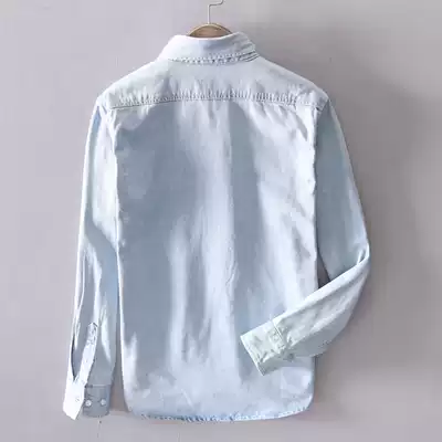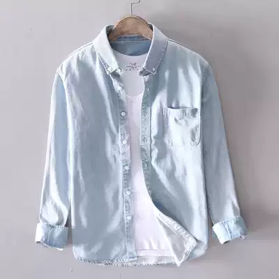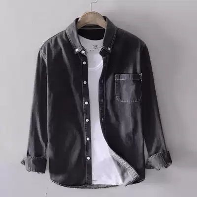 Spring and autumn thin retro washed denim shirt men's long sleeve loose casual shirt jacket Korean trend