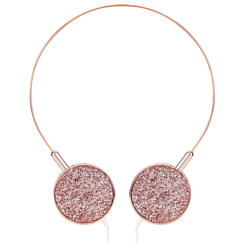 (upgraded version) pink sequin-ear piece (upgraded version) pink sequin-circle-style rose gold-cat ear headphone rose gold-circle section