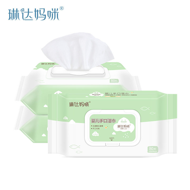 Linda mommy baby wipes Baby newborn hand and mouth special wet tissue bb wet paper 80 suction with cover*5 packs