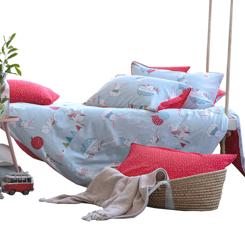 Blue Platinum Four Set Blanche Bunny Kids Girl 1 2m Single Double Cartoon Soft Cotton Pin Mu Set
