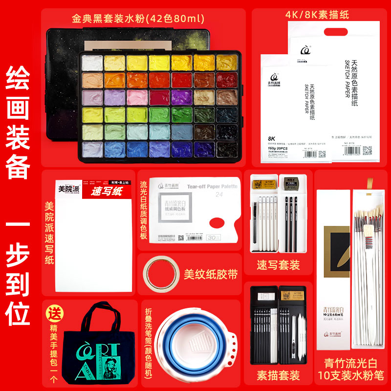 (Green bamboo store) green bamboo art test gift bag gouache paint set watercolor pen color paper beginner sketching professional tools training full set of painting bag painting art students art students