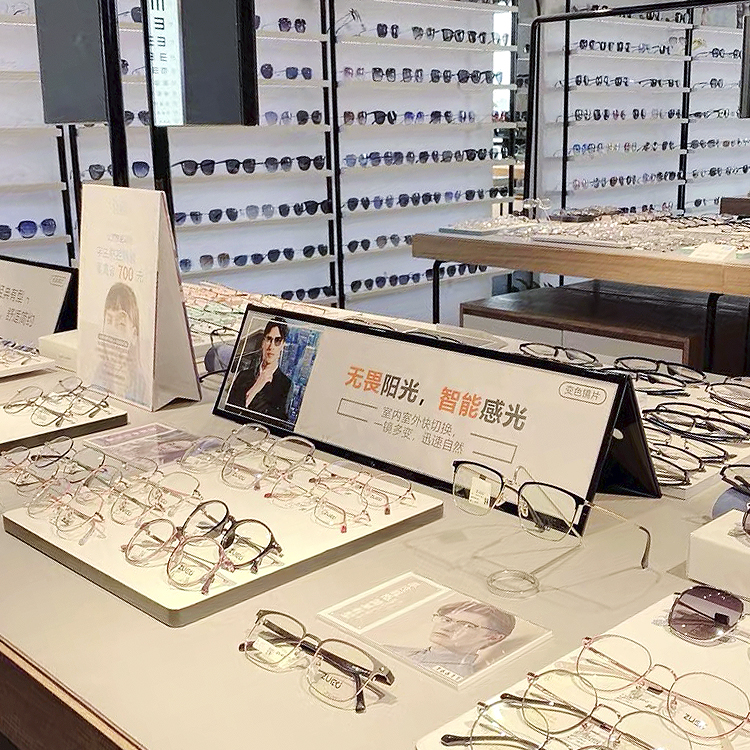 Optical shop display decoration props promotion atmosphere to create acrylic triangle double-sided 60x15cm display card