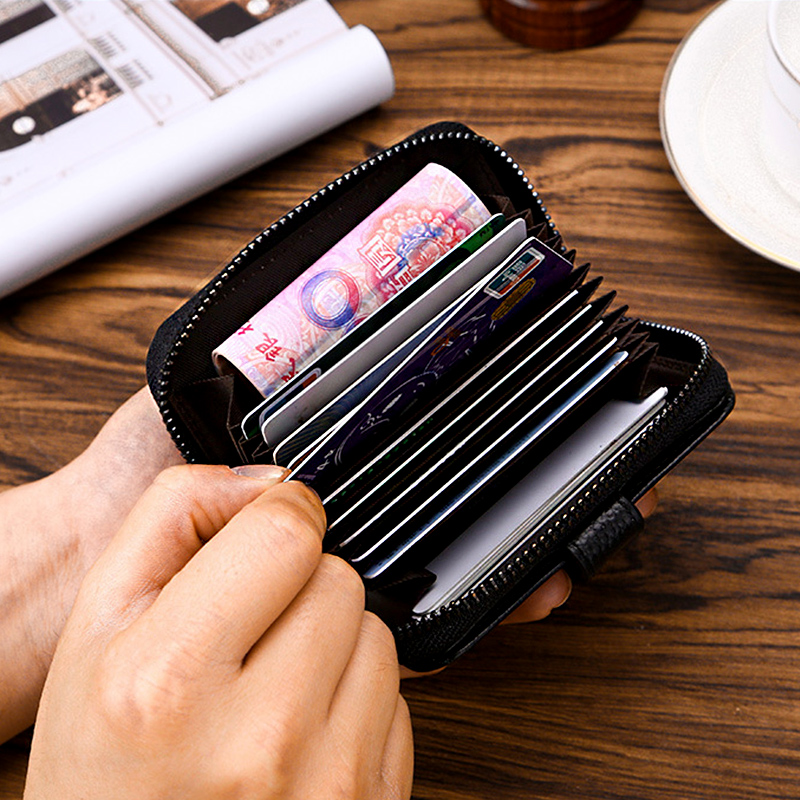 Head Layer Cow Leather Organ Cappachet Genuine Leather Rfid Male Lady Card Clip Sleeve Multifunction Document Bag Laced With Zero Wallet