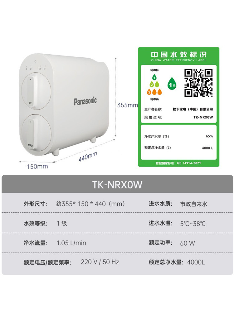 Panasonic water purifier 400G kitchen water purifier ro reverse osmosis water purifier household direct drinking water filter TK-NRX0W