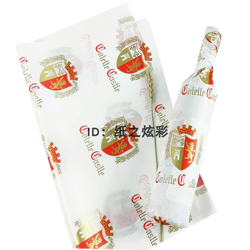 Customized 28g single light white cowhide red wine wrapping paper printing gold logo wine wrapping paper free sample