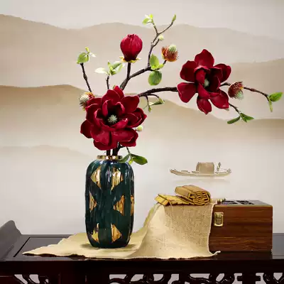 New Chinese Magnolia Simulation Flower Fake Flower Living Room Home Decoration Ornaments TV Cabinet Dining Table Decoration Porch Flower Art