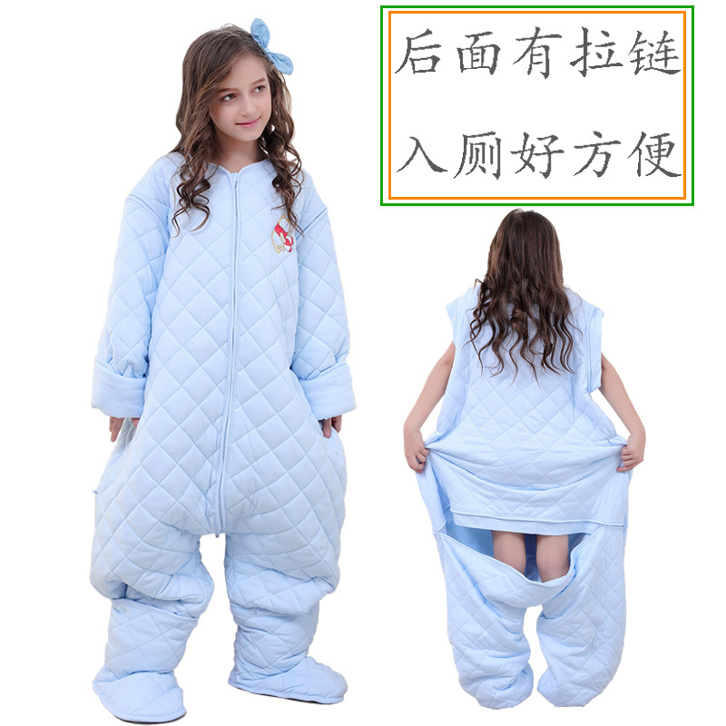 Spring and autumn thin cotton Sub-legged sleeping bag CUHK child students kindergarten anti-kick quilted by pure cotton autumn and winter air conditioning with foot sleeves