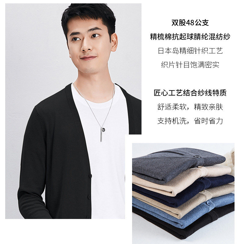 (Town shop Baby)Spring men's knitted cardigan V-neck sweater line clothing casual fashion trend base shirt
