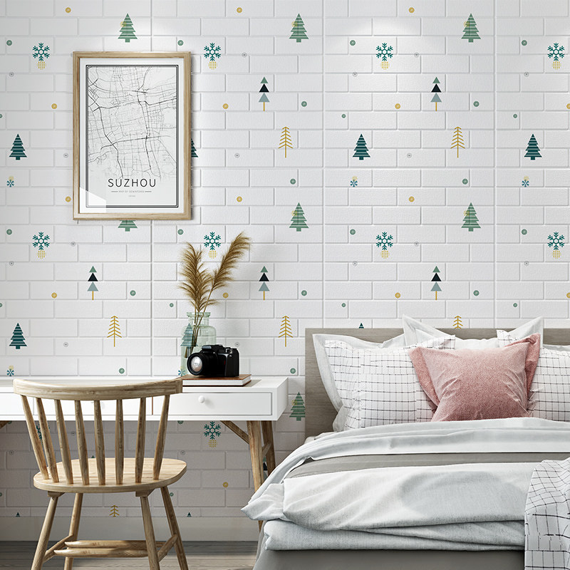 Wallpaper self-adhesive bedroom warm waterproof moisture-proof can be scrubbed background wall decoration wallpaper 3D stereoscopic net red wall sticker