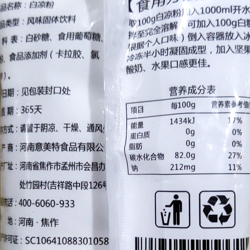 White jelly jelly special powder Edible jelly Household homemade pudding powder raw materials to make white jelly wholesale bags
