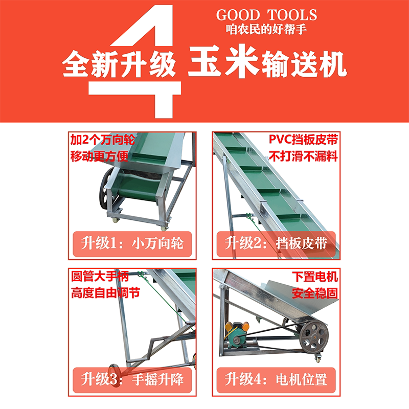 Corn cobs conveyor small conveyor belt household feeding lifting on the cob machine forage PVC grain conveyor belt