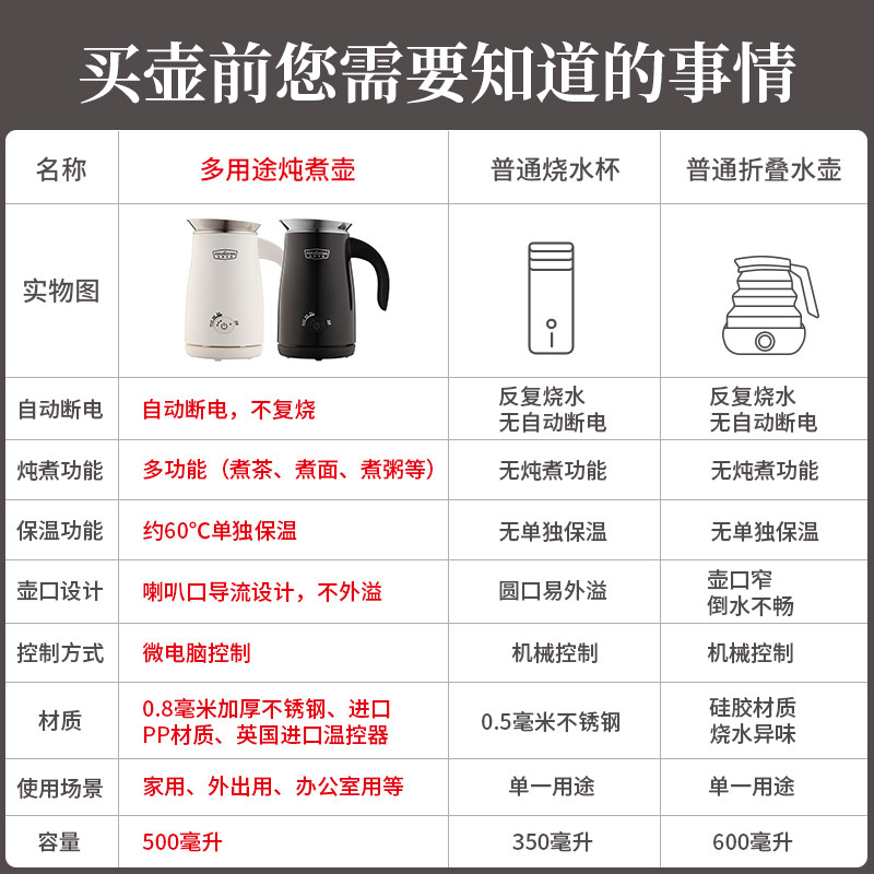 Mini kettle Multi-purpose travel electric kettle Small convenient kettle for dormitory students