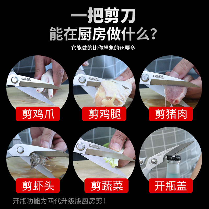Juzhengsheng Kitchen Scissors Strong Chicken Bone Scissors Multi-function Scissors Stainless Steel Household Kitchen Scissors Special for Kitchen