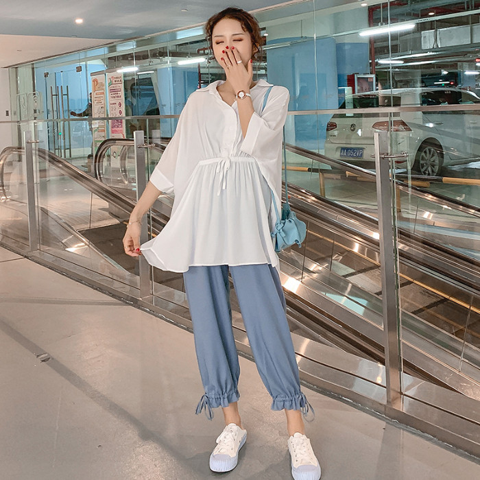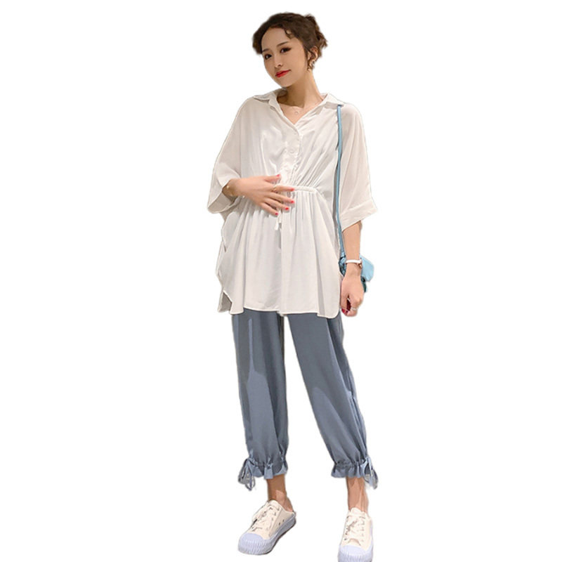 Pregnant Woman Summer Clothing Suit Fashion 2023 New Casual Blouse Two Sets Summer Dress Summer Net Red Dress