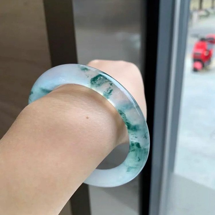 GuCui set jade bracelet Burmese natural a goods high ice species floating flower guifei jade bracelet wide version girl thin