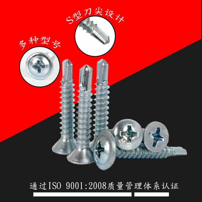 Drilling tail screw macro quite countersunk head flat large flat head galvanized blue white zinc tile nail colored steel tile self-tapping self drilling screw