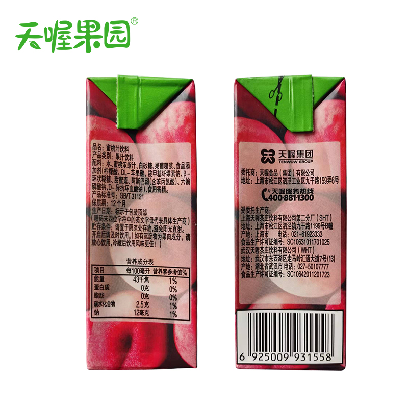 (tianoh) apple juice honey peach juice drink 250ml * 16 box summer degreasing clear and refreshing fruity drink whole box