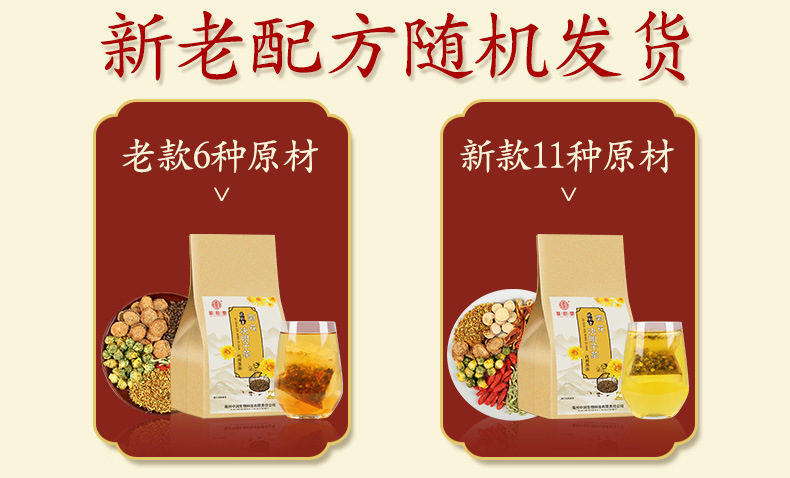 Cassia barley, dandelion, licorice, gardenia, orange peel, burdock root, wolfberry, chrysanthemum, honeysuckle, osmanthus