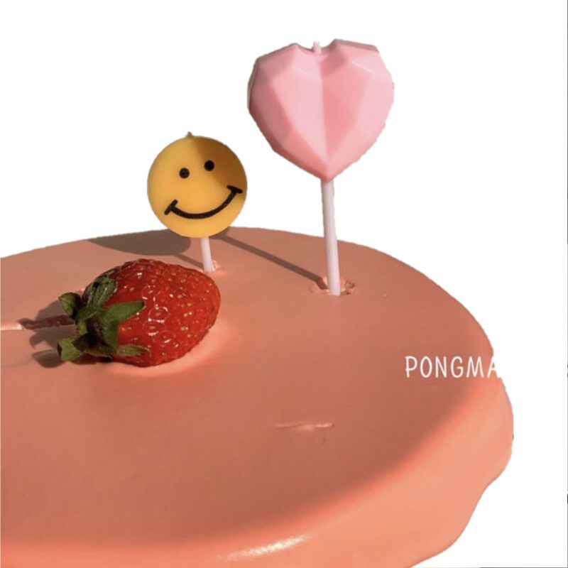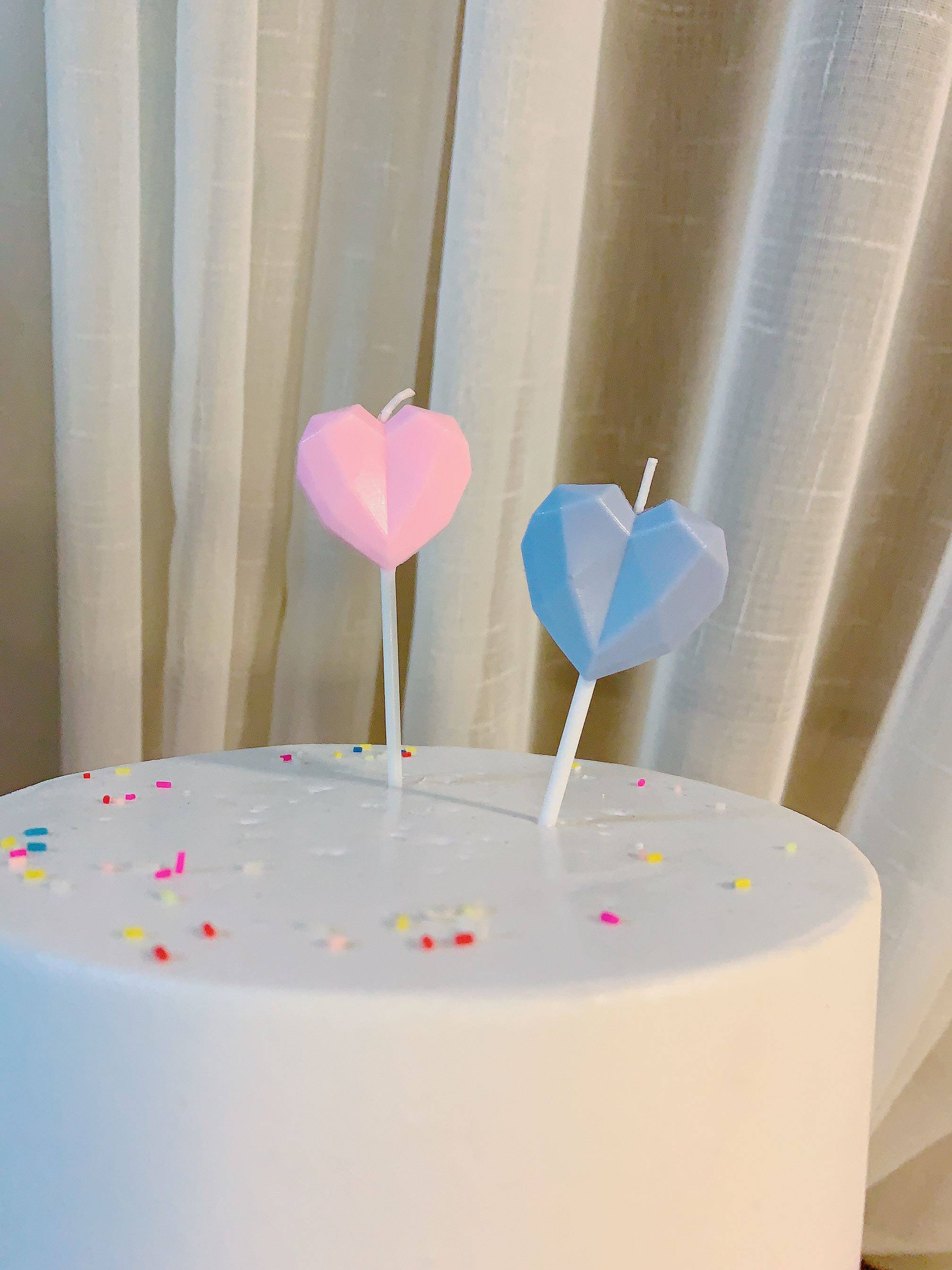 Korea ins color romantic diamond love birthday cake candle macaron color heart-shaped candle