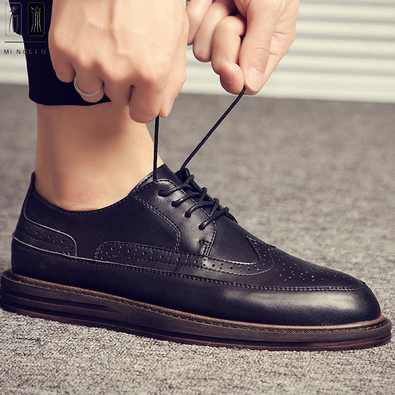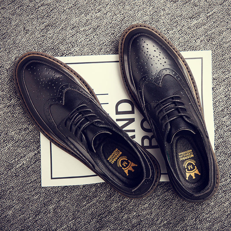Small leather shoes men's wedding groom leather summer breathable casual business formal British style brogue men's shoes