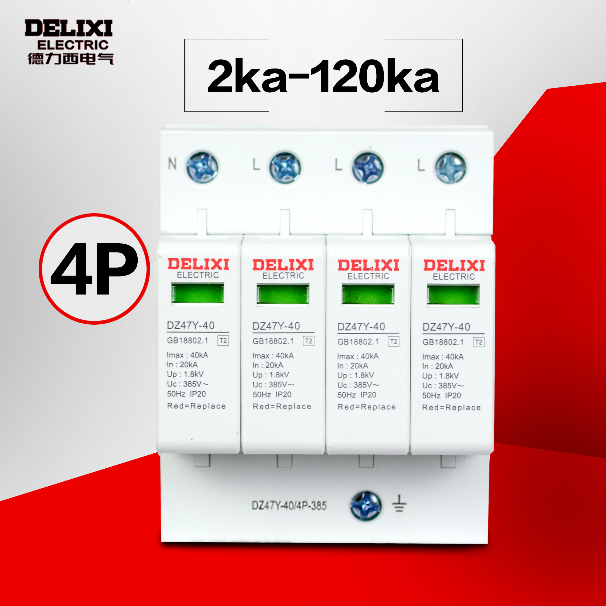 Delixi surge protector lightning arrester Lightning arrester lightning protection DZ47Y-40 surge switch 220v380