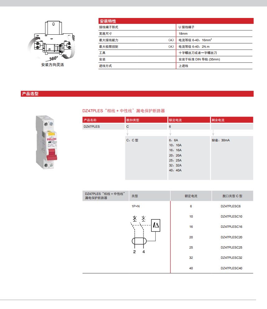 Delixi DZ47PLES double-in and double-out 1P N household air switch with leakage circuit breaker electric shock protector