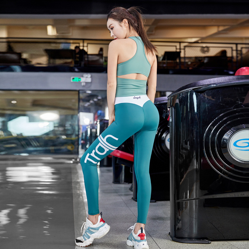2021 spring and summer new fashion hollow beautiful back yoga sports vest buttocks peach buttocks yoga pants two-piece women