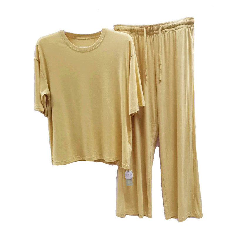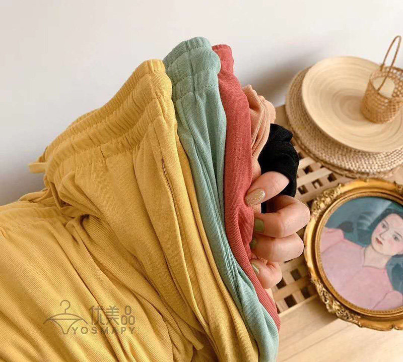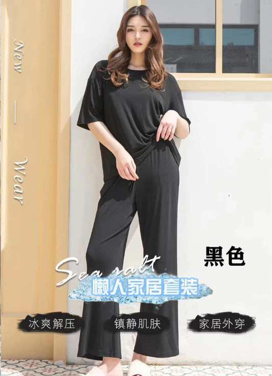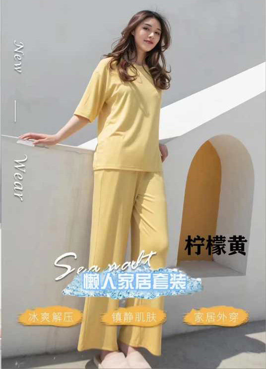 Wide legs pants home dress girl can go out out for leisure thin loose powder ice sleeve sleeve sleeve sleeve spring and summer snow cake suit