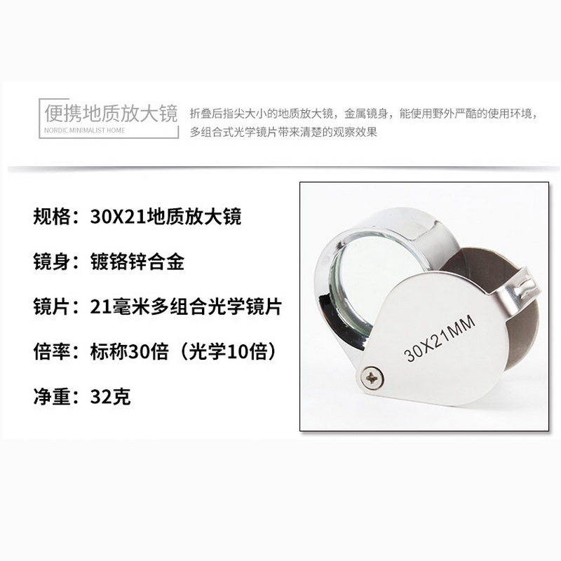 30 times geological magnifying glass pocket folding convenient geological specimen observation jewelry stamp coin identification tool