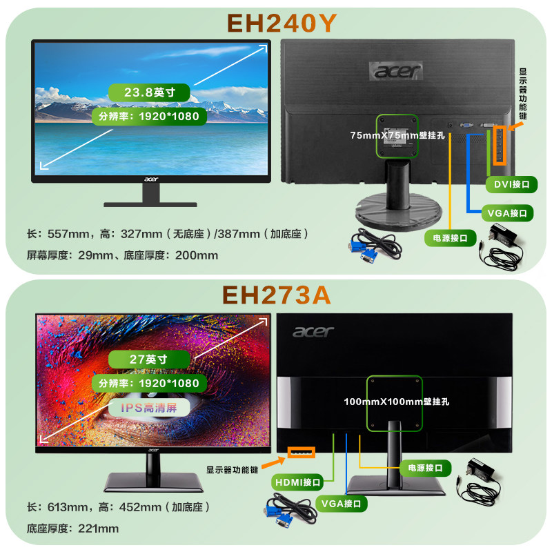 Acer macro chess high-definition display EH200Q can be wall-mounted 27 23 8 21 5 19 5 inch LCD screen